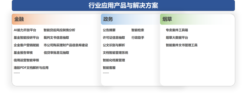 智能思創的企業級非結構化處理平臺利用人工智能技術,打通識別、挖掘、分析非結構化數據的全流程,通過將非結構化數據與傳統結構化數據相結合,平臺可以幫助企業實現更全面、深入的數據分析,從而發現、挖掘更多的商業機會,帶來更高的收益。目前平臺已切入金融、煙草、政務、房地產、財政稅務等垂直領域的明確應用場景,并形成了相關垂直應用產品如信貸審核輔助、企業財報分析、智能投研、流水識別與分析、合同智能審核、智能檢索等。