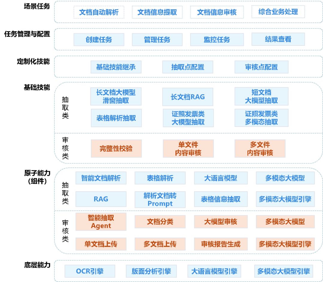 4. 執(zhí)行抽取/審核任務(wù):系統(tǒng)根據(jù)用戶配置的要素,順序執(zhí)行所有抽取器,解析文檔內(nèi)容,提取所需信息。執(zhí)行過(guò)程中,系統(tǒng)會(huì)記錄每個(gè)抽取步驟的狀態(tài)和中間結(jié)果,方便用戶進(jìn)行監(jiān)控和調(diào)整。